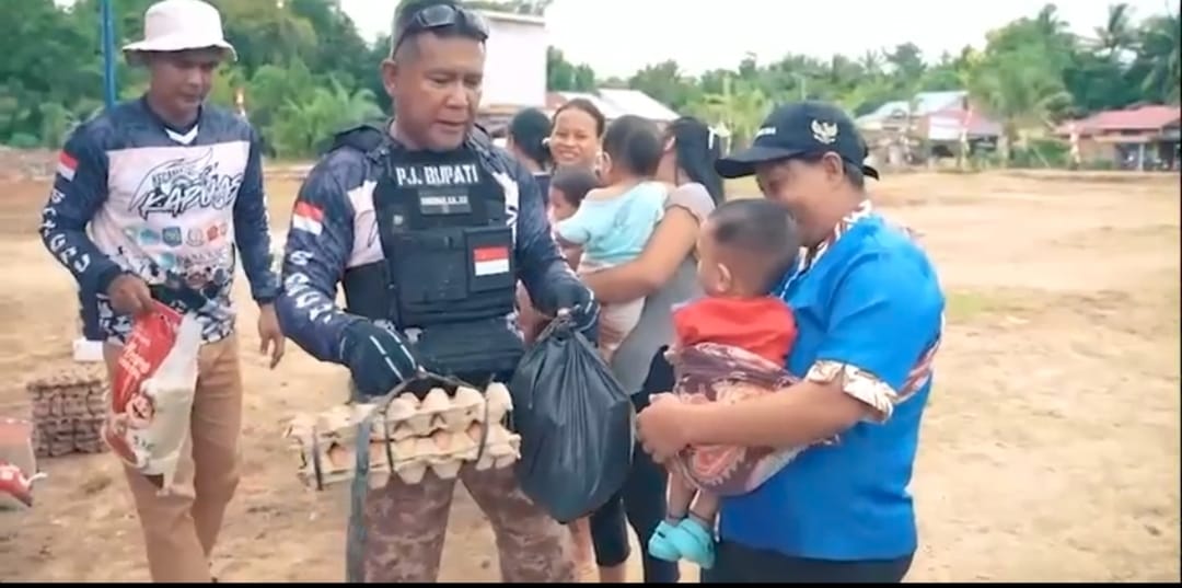 FAKTA GRUP – Penjabat (Pj) Bupati Sanggau, Suherman menyerahkan bantuan kepada anak yang terdiagnosa stunting saat mengunjungi dusun Biang Rosan Desa Rambin Kecamatan Kapuas.