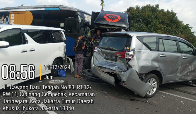 Sebagaimana dilihat dari laman akun X.com resmi TMC Polda Metro Jaya, Jumat 13 Desember 2024, tampak satu unit mobil Toyota Vellfire putih dan Toyota Innova mengalami kerusakan di bagian belakang.