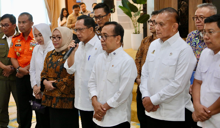 “Karena kalau terjadi kerusakan jalan provinsi dan kabupaten, itu akan berimbas kepada lalu lintas secara nasional,” kata Mendagri Tito di hadapan awak media usai mengikuti Rakor Tingkat Menteri terkait Persiapan Hari Raya dan Libur Idul Fitri 1446 Hijriah di Kantor Kementerian Koordinator (Kemenko) Bidang Pembangunan Manusia dan Kebudayaan (PMK), Jakarta, Rabu (5/3/2025).