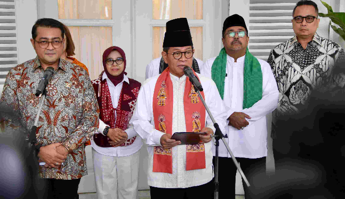 Gubernur Pramono menyampaikan informasi terkait kerja sama Pemprov DKI Jakarta dan Kementerian Ekraf kepada awak media di Balai Kota Jakarta, Jumat (7/3/2025)/Diskominfotik.